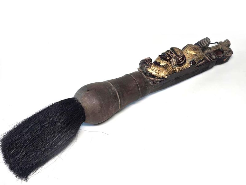 Alter Pinsel mit Fu‑Hund‑Schnitzerei – Kaiserliches Wächtersymbol der Qing‑Dynastie