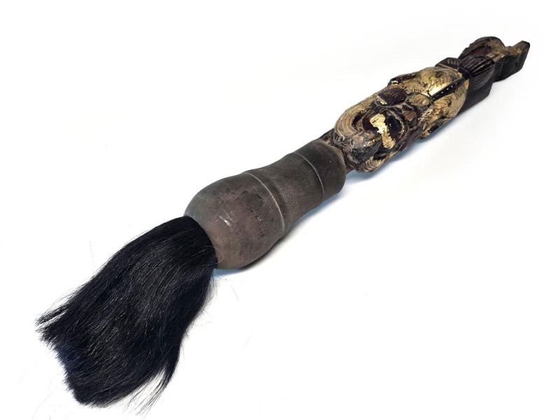 Alter Pinsel mit Fu‑Hund‑Schnitzerei – Schutzkraft und Glück der Qing‑Dynastie