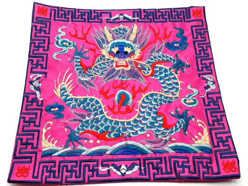 Chinesische Stickerei - Emblem - Rosa - Drache